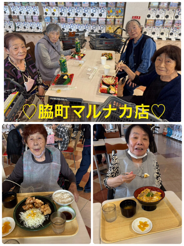 ほうらい会 デイサービス美馬です。 10月6日(月)、8日(水)、14日(火)に外出行事を行いました。今回の外出はマルナカ脇町店にて昼食と買い物、御所の郷で昼食をされた後、マルナカ柿原店での買い物に行って来ました。 自分で選んだ昼食を前にほくほく顔です😊 蓬莱のまごころツール「喜びづくりの七つ道具」心に花束を持ちます感謝の気持ちを心の花束にしお礼の言葉をメッセージカードに添えて素直に読み上げお礼を伝えます ...