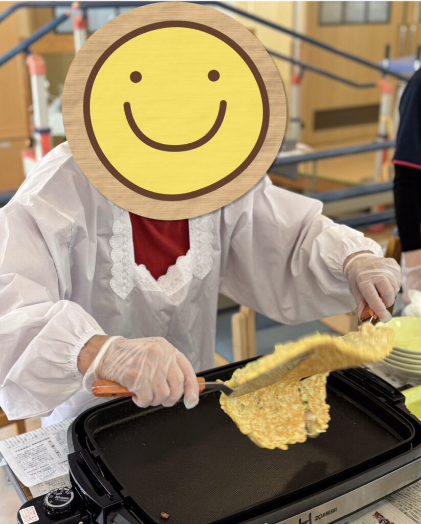 ケアプラザ美馬 デイサービス美馬です。 11月8日(土)の昼食はお好み焼きを職員が焼きました。 焼きたてのお好み焼きは大好評‼「もう一枚もらえるで」と、皆さんおかわりをされていました。 上手くひっくり返せたよ👍 「焼きたては、美味しいね😋」 蓬莱のまごころツール「喜びづくりの七つ道具」心にネクタイを締めます利用者さんはたとえどのような身体状況になっても紳士淑女としての尊厳をお持ちです私たち職員自身も尊敬の...
