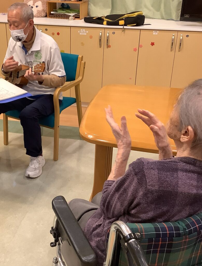 11月に入り、肌寒い季節🧣となってきましたが、萌黄ユニットでは心温まる時間が流れました。 先日、職員によるウクレレ流しが行われ、フロアには優しいウクレレの音色が響くと、利用者様の表情がふわっと明るくなり、自然と手拍子をしたり、口ずさんだりと、和やかな笑顔でいっぱいになりました😊。特に「幸せなら手を叩こう👏」の曲が流れた時には、皆様が歌に合わせて手を叩き、フロア全体が一体になったようなとても温かい空気...