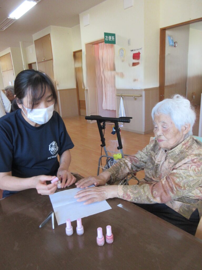 美馬拠点グループホームです。 何歳になっても女性はおしゃれをしてキレイでいたいですよね(^^) 数種類ある中からご自身で色を選んで頂きマニキュア塗りをしました! 「あんたこの色似合うなぁ」や「私こんな赤いのにした」 「きれいなぁ、久しぶりにした」と会話も弾み絶賛でした💕 皆さん爪に艶がでて若々しくなりましたね(*^-^*) ほうらいのまごころツール 「喜びづくりの七つ道具」 心に鏡を持ちます 自身の行動を心の中の鏡に...
