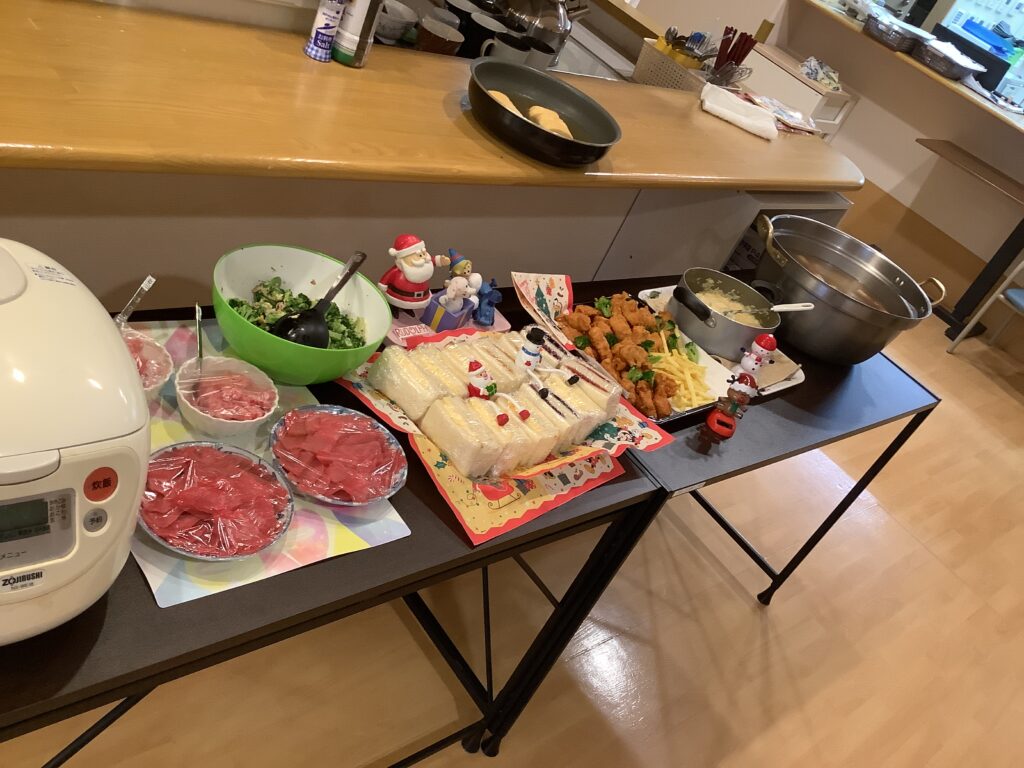 明けましておめでとうございます。 4階山吹ユニットでは年末に萌黄ユニットと合同でのクリスマスパーティを行いました。 美味しいサンドイッチや、唐揚げポテトなどもりもり盛りだくさんでした(^^♪ お刺身もあり、笑顔で召し上がられていました。 寒い日🥶が続きますが、体調崩されないようお過ごしください。 ...