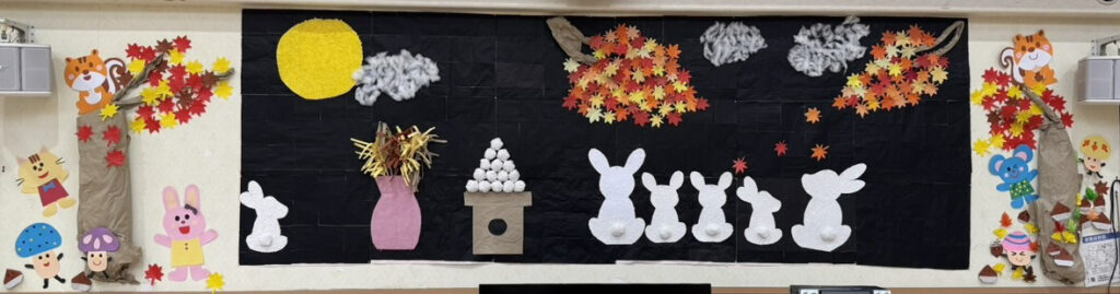 利用者の方と一緒に、十五夜の壁画作りをしました🌕