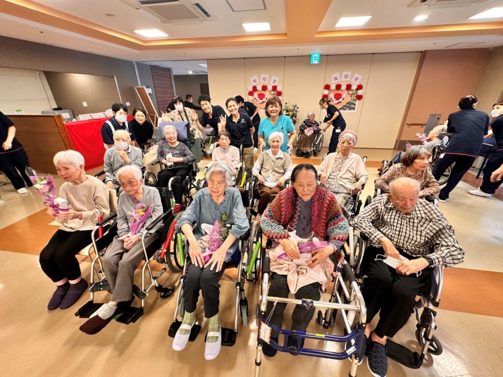 今回は、ケアハウスの敬老会です。皆さんお元気で