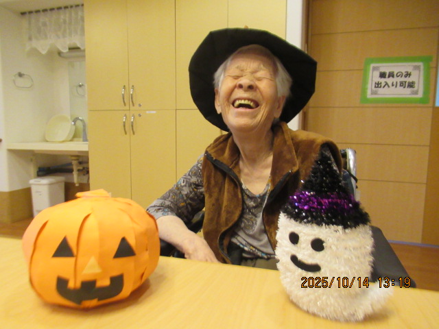 ご入居者様も、魔女の帽子をかぶり、お写真を撮らせていただきました。