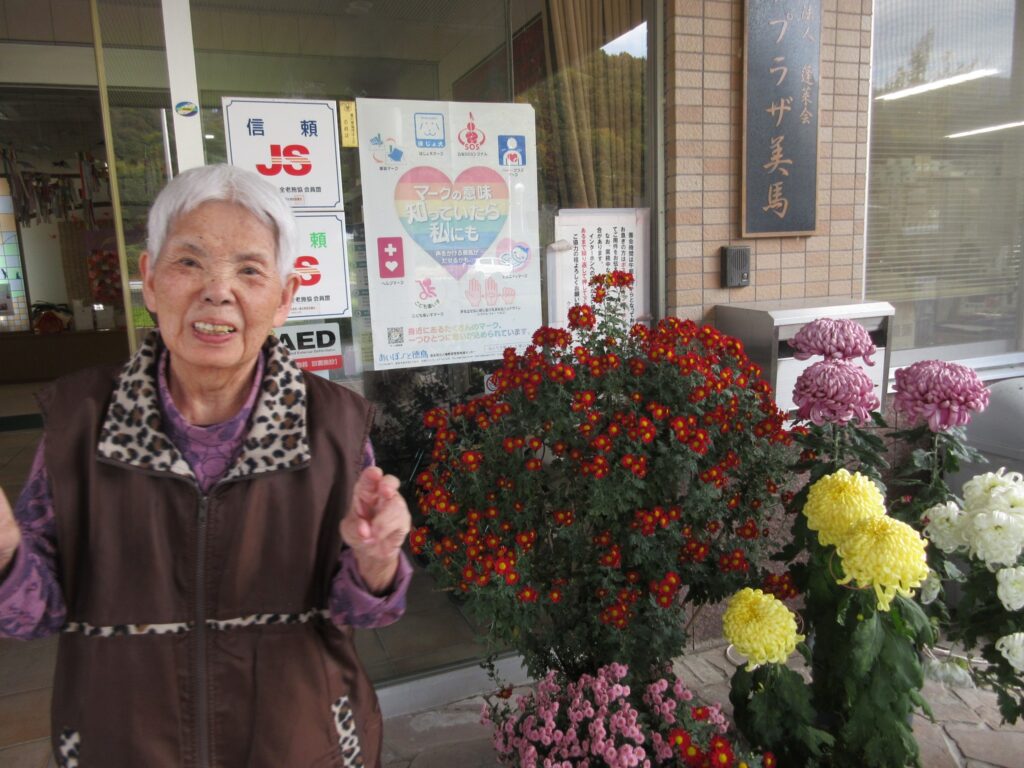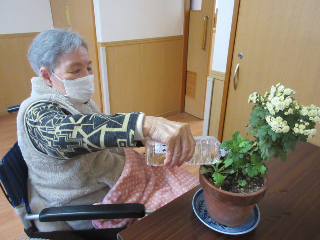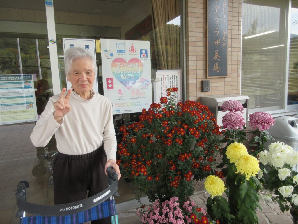 施設前に菊の花を展示しており、利用者様と散歩がてら見に行きました(*^-^*)