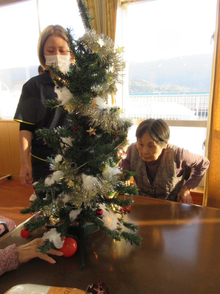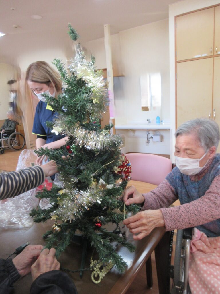 そんな慌ただしく過ぎていく日々の中、クリスマスツリーを利用者さんと飾りつけしました☺