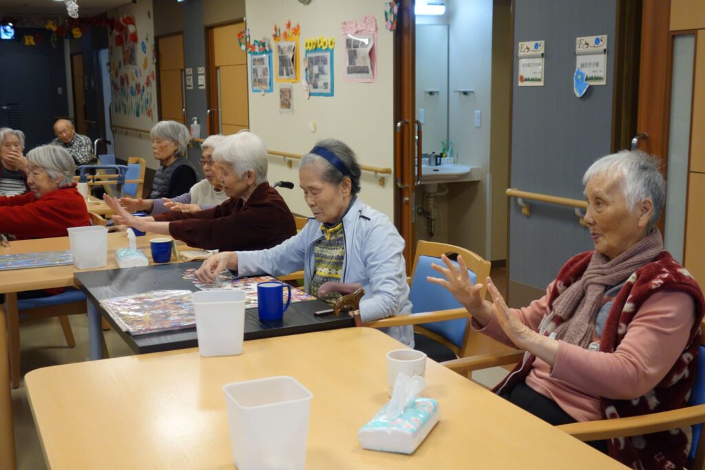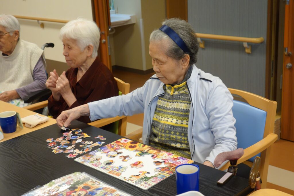 中には、体操音楽を楽しみながら、ジグゾーパズルに夢中になっている方もいますね。