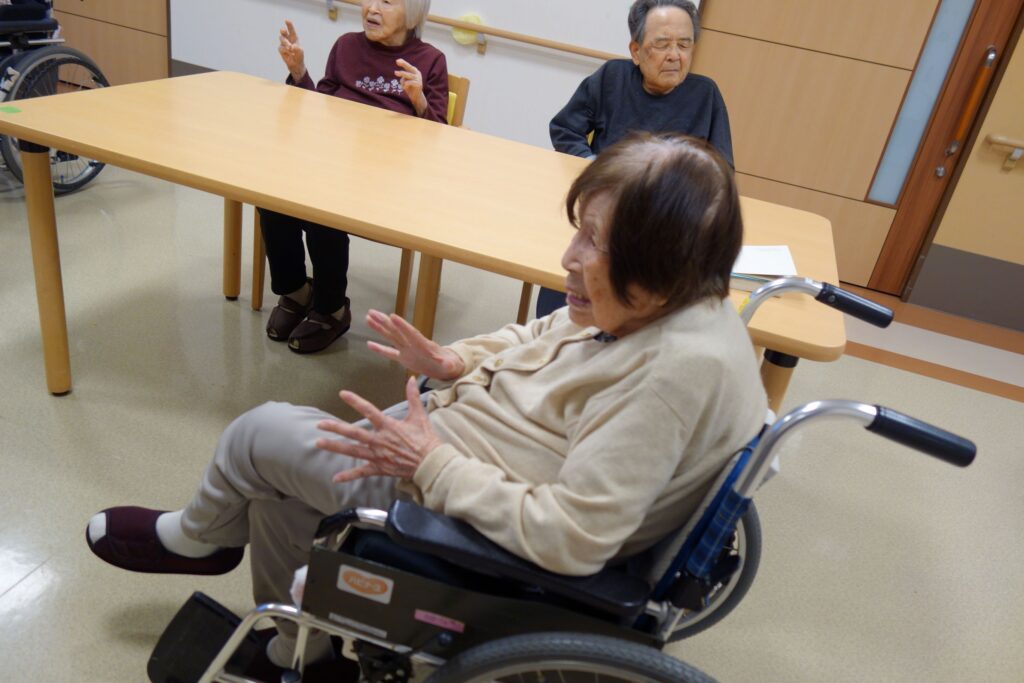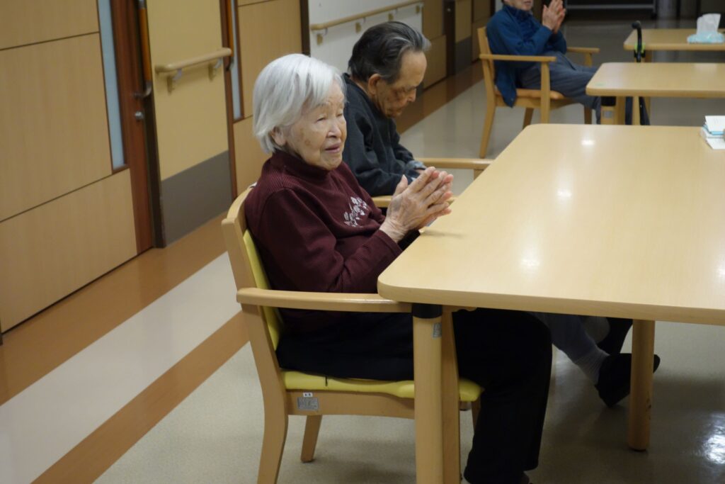 「さあ、みなさん手を挙げて、グーパーから始めますよ」
