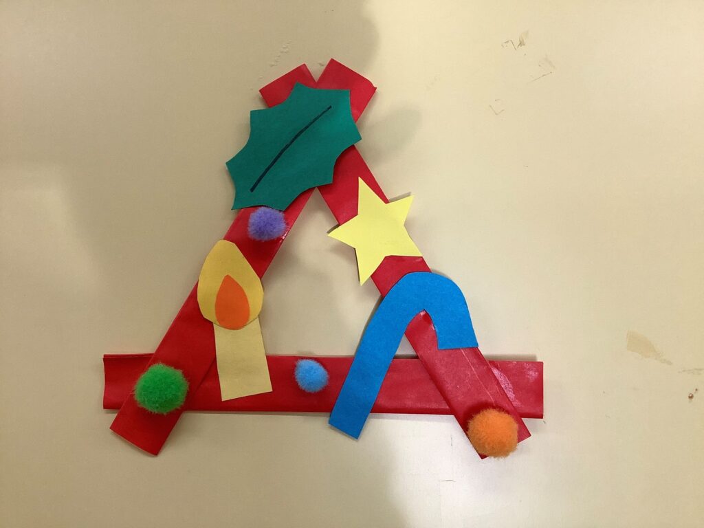 今年のクリスマス飾りは、小さい三角リースをたくさん作りました。