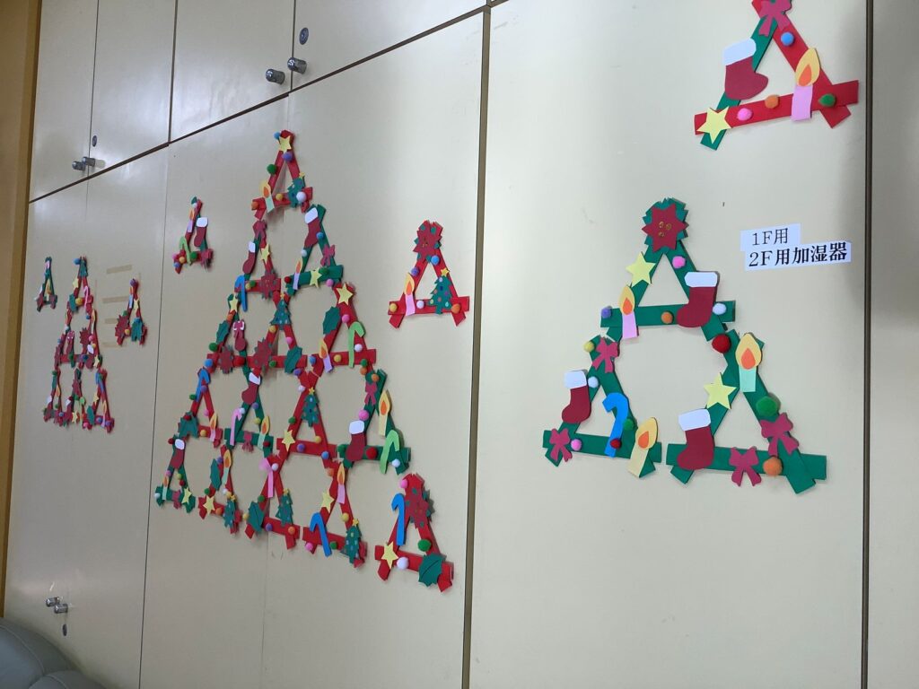 食堂内には、違う形のツリーを作成しました。