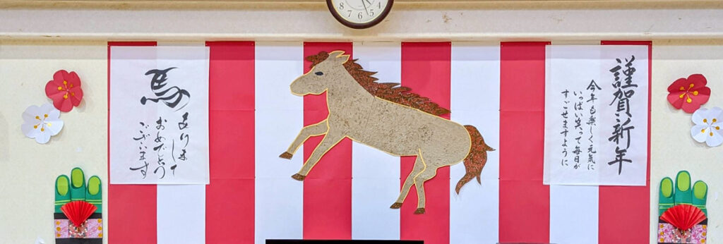 今年は午年です。利用者の方と一緒に壁面を作りました‼