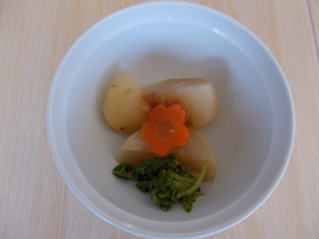 昼食時に召し上がって頂きました。利用者様から、「大根が軟らかくて