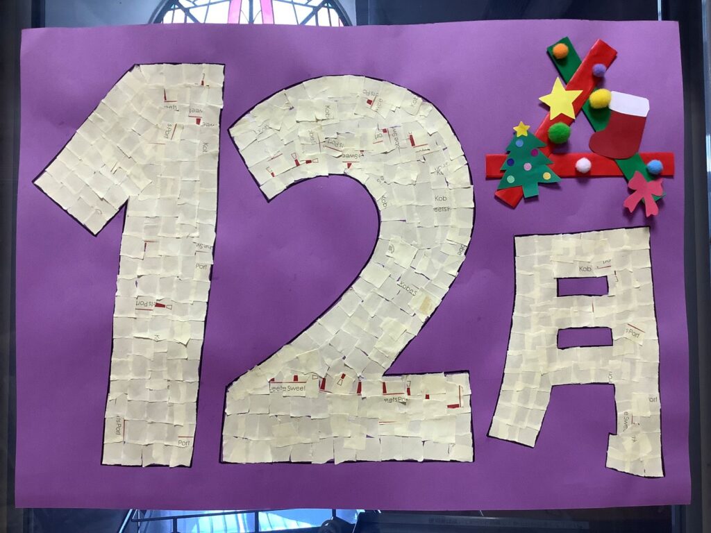 あっという間にクリスマス直前! ブログ投稿するのが、すっかり遅くなってしまいました。 今月の壁面作品を紹介します。 今月は、もちろん”クリスマス”です! 今年のクリスマス飾りは、小さい三角リースをたくさん作りました。 土台は折り紙で、飾りも一つ一つ型を取って、切ってもらいました。 飾りは全部で9種類。つける時は、「ここにこれが来たら、あれが貼れんなあ」など、皆さん悩みながら作成してくれました。中には、 ......