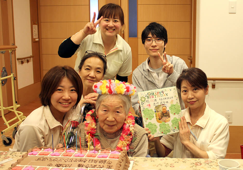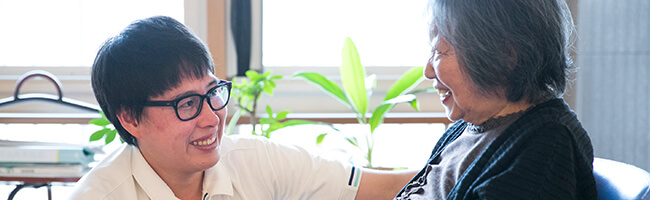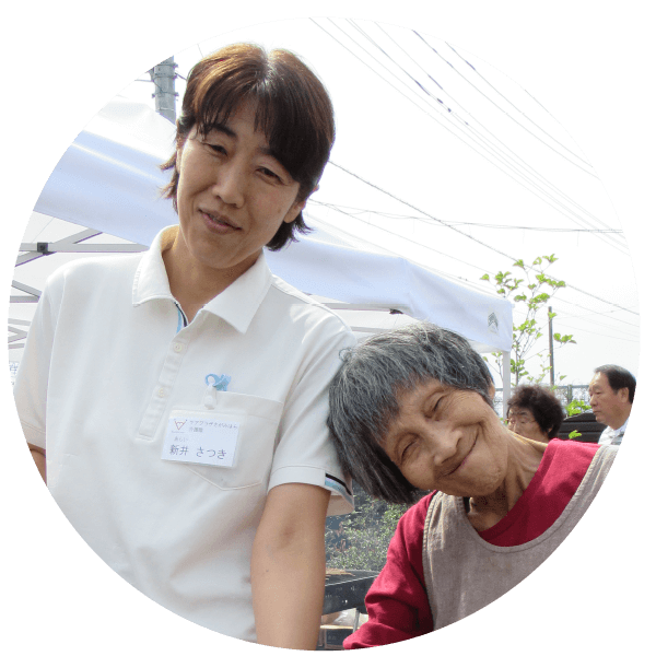 私たちの仕事は、利用者さんからたくさんの「ありがとう」と笑顔をいただけます。この笑顔で心が救われることもあります。 同時に利用者さんが自然に笑顔になれる環境づくりは私たちにとっては、とても大きな役割と言えると思います。