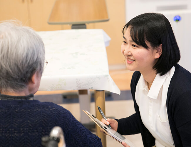 全ての仲間が力を合わせれば、より良いケアができるのが介護の仕事です。 独りよがりにならず、みんなで仕事をする。それが介護なので、チームプレイができることが必要となる職場です。