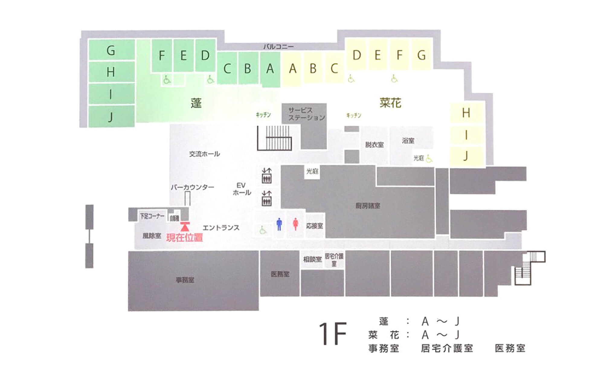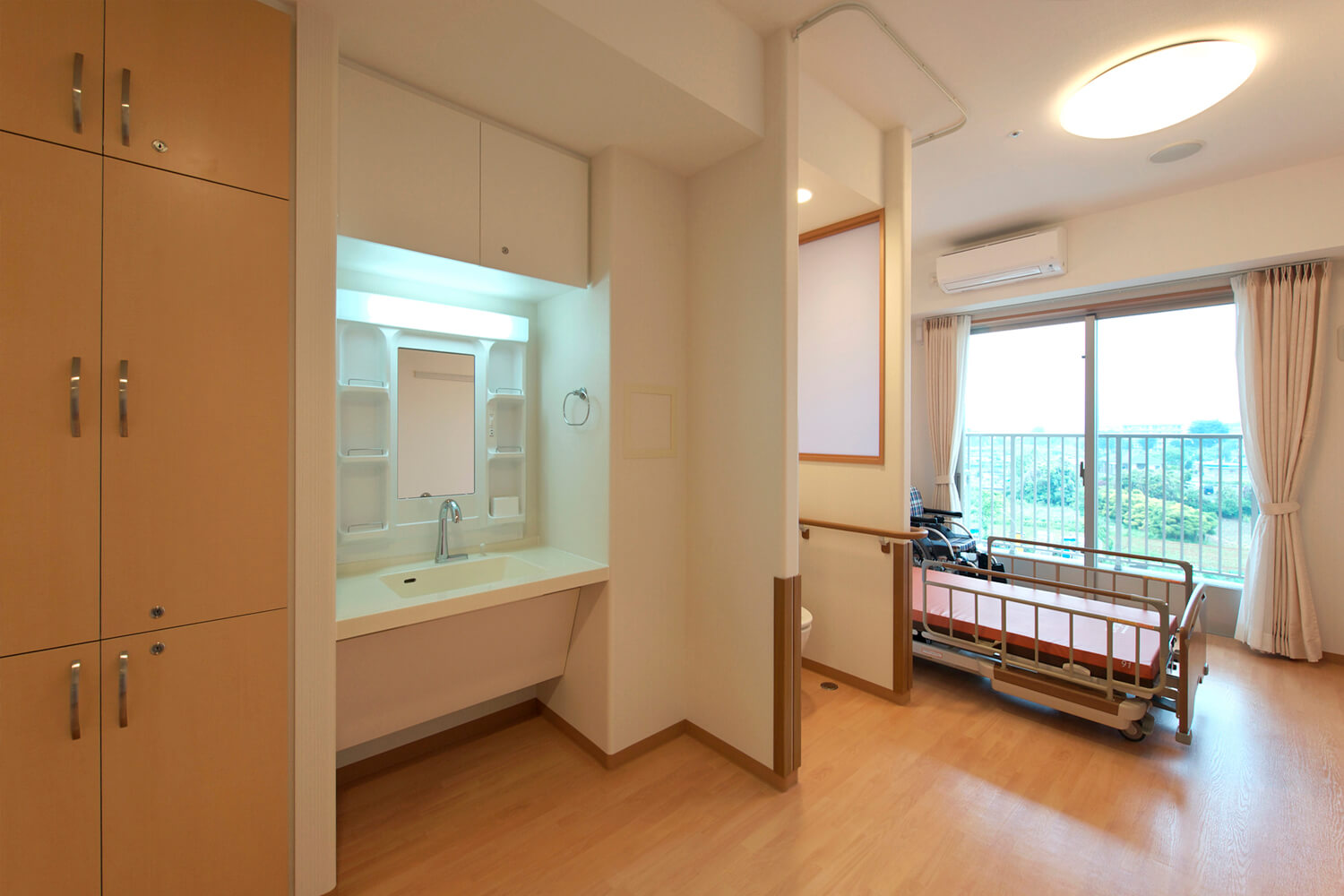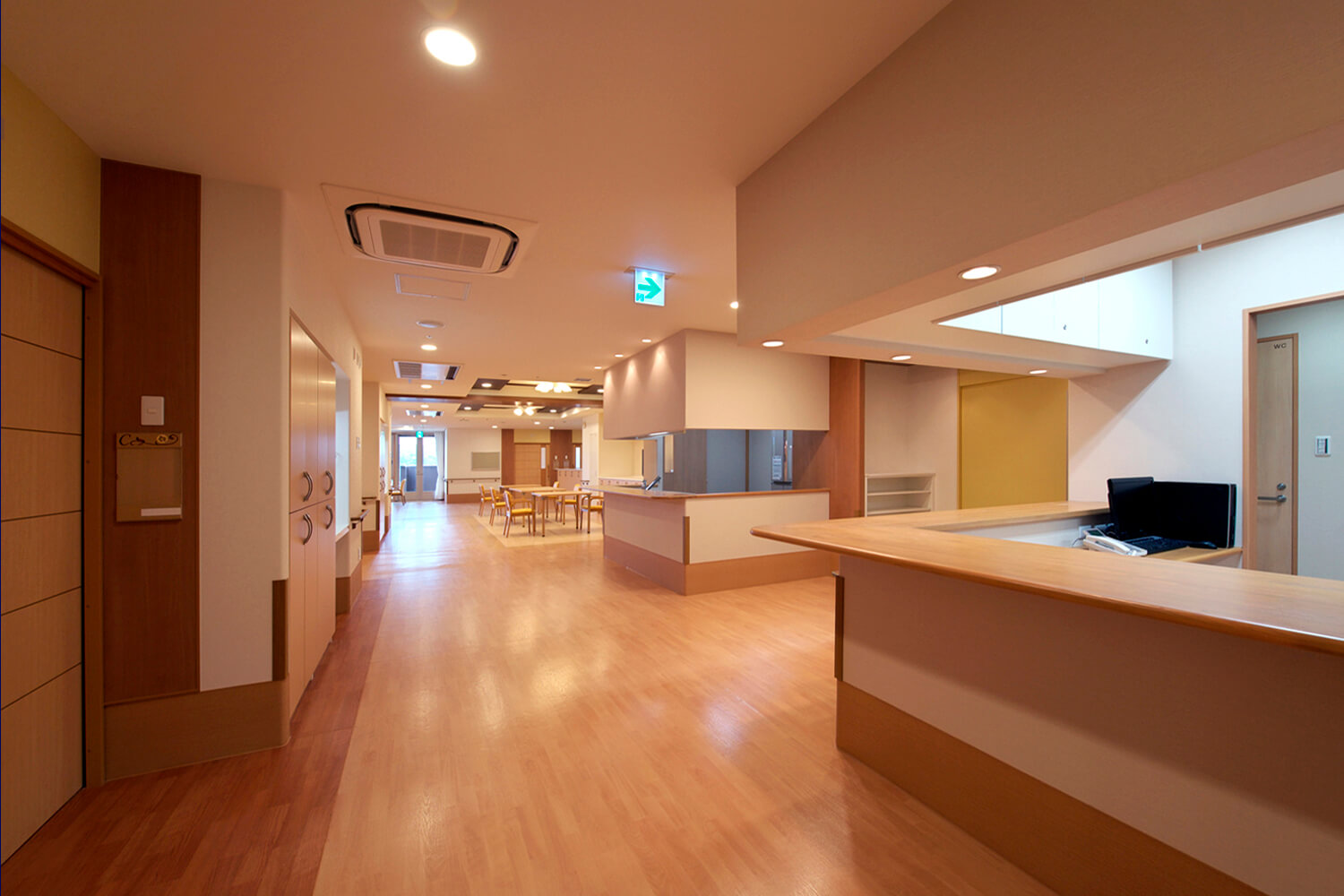 オール個室130床の4階建。生活しやすく工夫された住環境と入居者の方々のコミュニティスペース。 そこに介護の専門知識を持った明るいスタッフが入居される方お一人、お一人の状態に合わせたケアプランによる介護を提供し、 みなさまの明るく豊かな生活を支えます。できる限り家庭的な雰囲気の中で生活していただけるよう小規模なグループでの 食事・談話・リハビリをしていただけるように心掛けています
